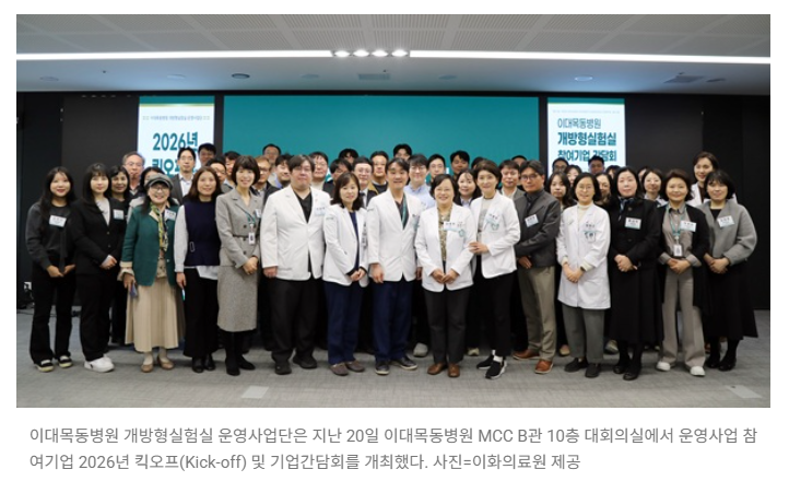이대목동병원 개방형실험실 운영사업은 병원의 우수한 연구 인프라를 창업 10년 미만 기업에 개방하여 공동연구 및 제품 상용화를 지원하는 프로젝트다. 이번 2026년도 사업에는 기존 1기 기업 11곳과 신규 합류 16곳을 포함, 총 27곳이 참여기업으로 선정되었으며, 제닉스큐어도 그 중 하나로 이름을 올렸다.
