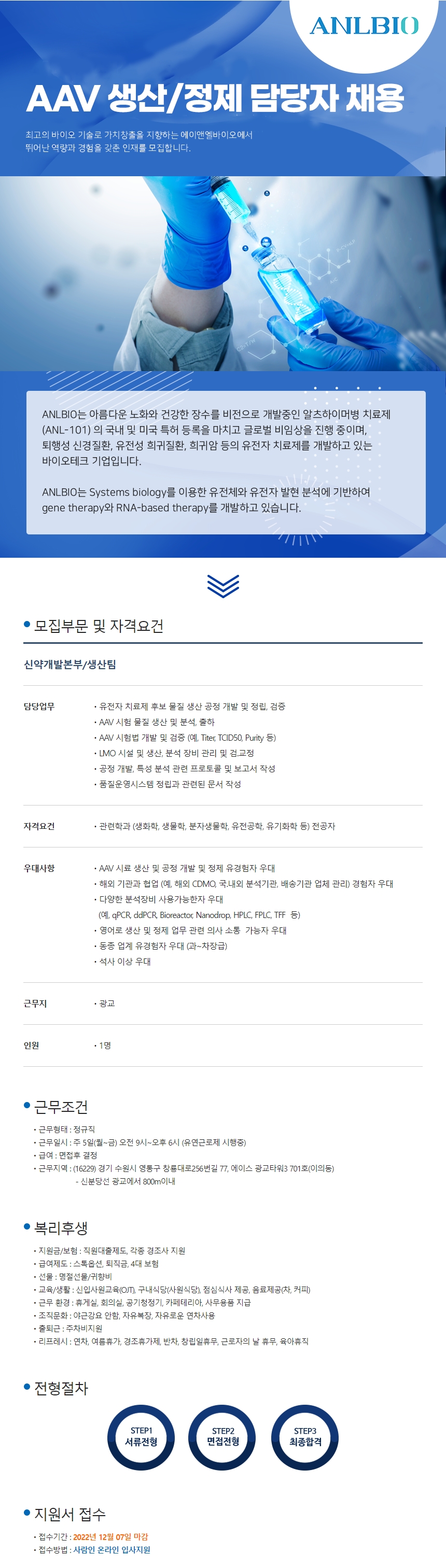 AAV 생산/정제 담당자 채용